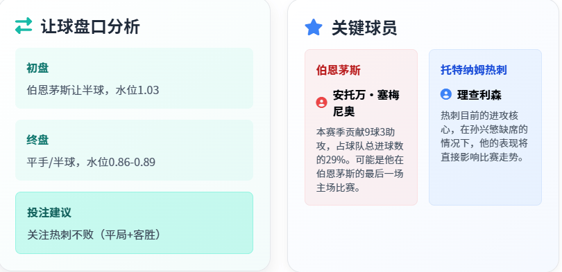 从整体实力来看,热刺无疑占据上风。作为英超传统强队,热刺全队总身价远超伯恩茅斯,本赛季虽状态起伏,但仍以29分排名积分榜第7位,距离欧冠区仅差4分。伯恩茅斯则处境艰难,目前以17分位列第16位,仅高出降级区2分,保级压力如影随形。